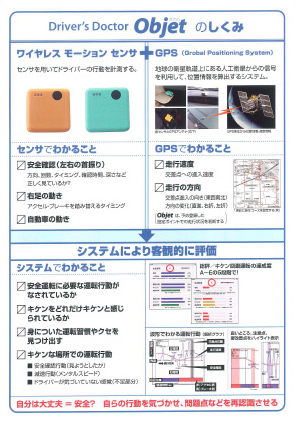 「Object(オブジェ)」による確認動作と、適性診断「NASVA-NET(ナスバ・ネット)」による判断・動作機能、視覚機能の診断とを組み合わせた運転診断です。
